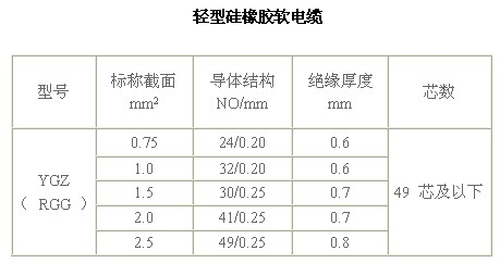 產(chǎn)品特性: 1、額定溫度:-50℃~+200℃(高使用環(huán)境溫度:200℃ 低使用環(huán)境溫度: -50℃) 2、額定電壓:YGZ300/500V、YGC450/750V 3、導(dǎo) 體:單根或多股鍍錫銅絲 4