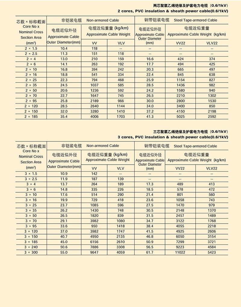 0.6/1KV聚氯乙烯J緣電力電纜
